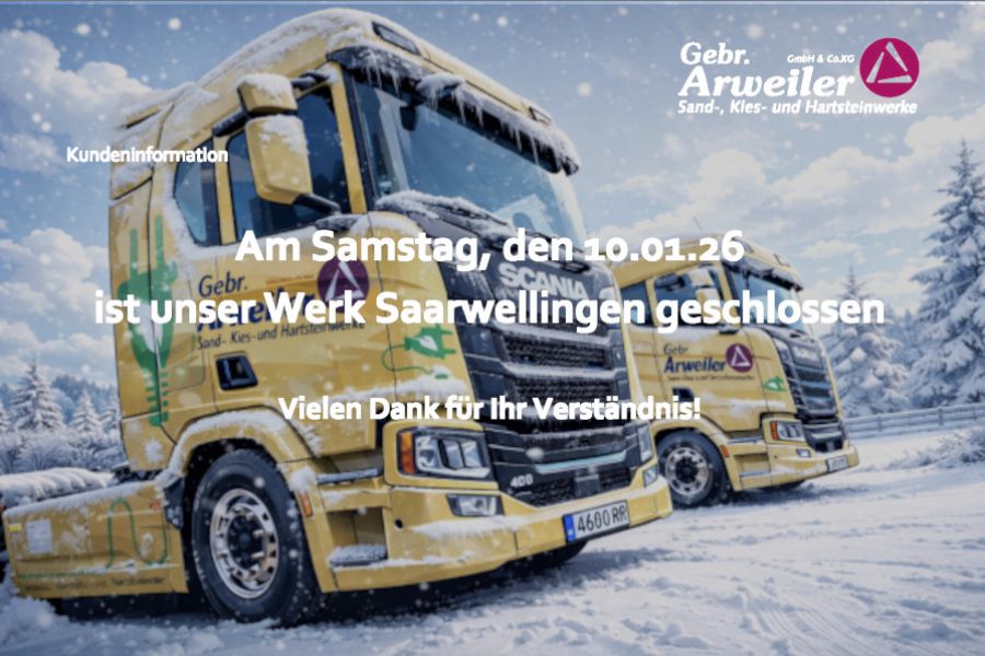 Die Pionier-Investition im Fuhrpark der Gebr. Arweiler GmbH & Co. KG, Sand-, Kies und Hartsteinwerke, fiel 2023 zusammen mit dem 75. Jahr des Bestehens eines des größten saarländischen Betriebes in dieser Branche. Er deckt 25 Prozent des saarländischen Bedarfs an Sand, Kies, Hartstein und Erden aus seinen neun eigenen Lager- und Abbaustandorten ab. Einer davon liegt im elsässischen Sessenheim, wo seit 1967 auf einer 96 ha großen Wasserfläche in unmittelbarer Rheinnähe Rheinsand- und Rheinkies gefördert werden. Ökostrom für den Bagger dort will Arweiler künftig selbst produzieren: Dort läuft ein Antrag zur Errichtung eine schwimmenden Photovoltaik-Plattform von 14 ha Größe, einmal für den Eigenbedarf, zum anderen soll der überschüssige Strom in das regionale Stromnetz eingespeist werden.